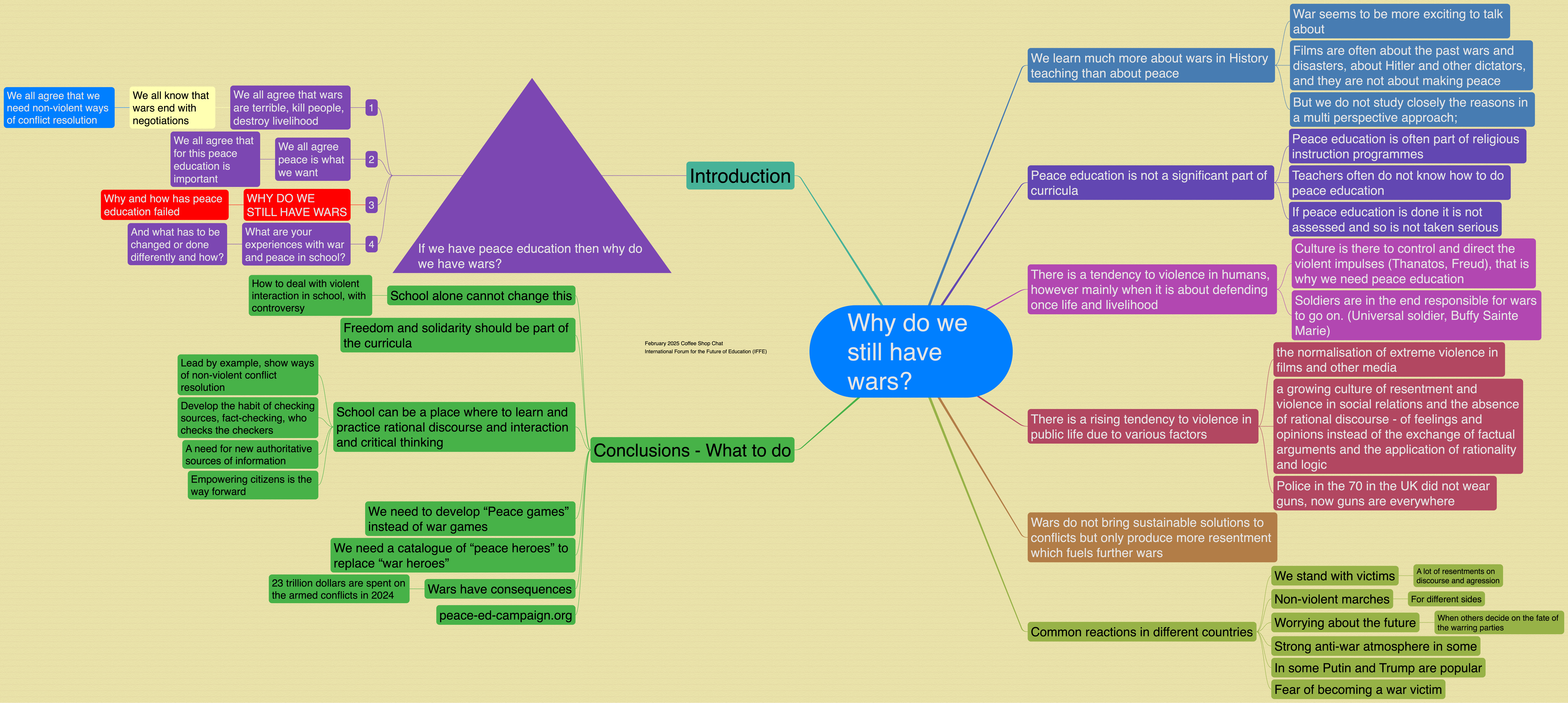Were has the peace movement gone? Where did peace education fail? What are your experiences with war and peace in school conversations? And what has to be changed or done differently and how?