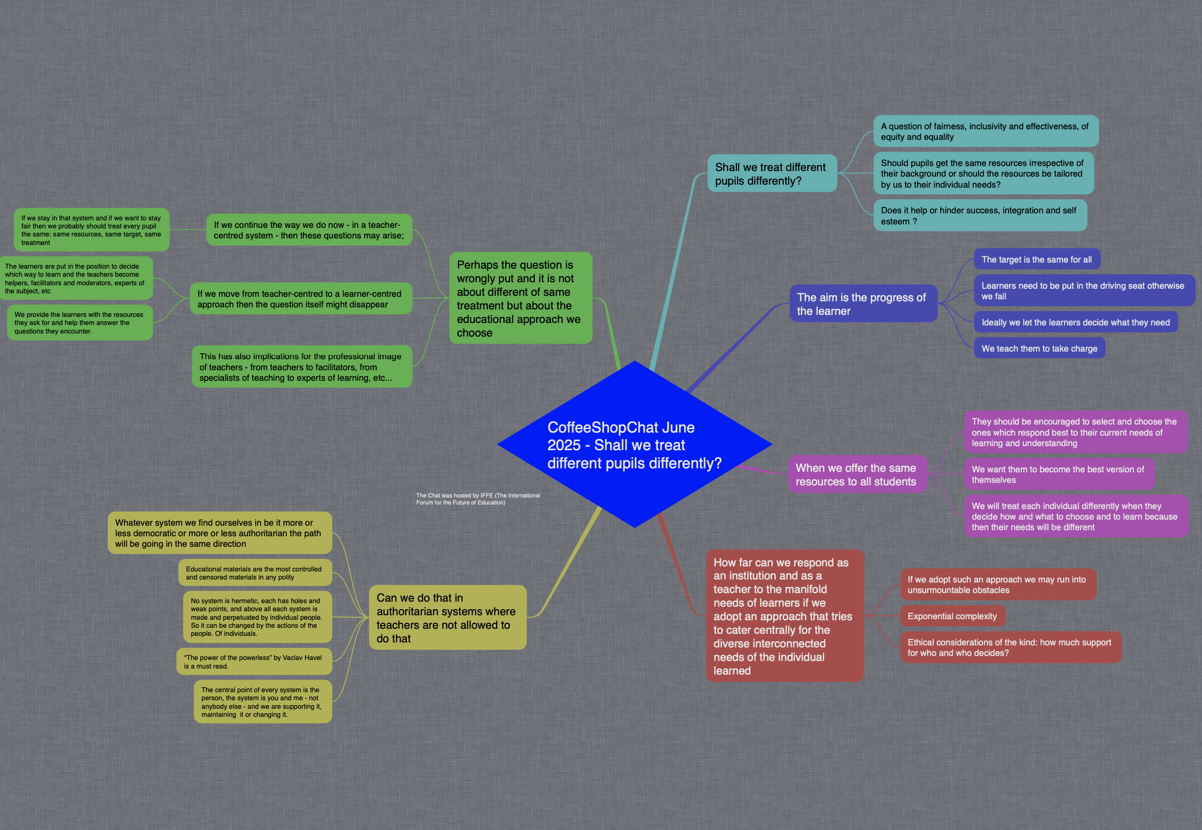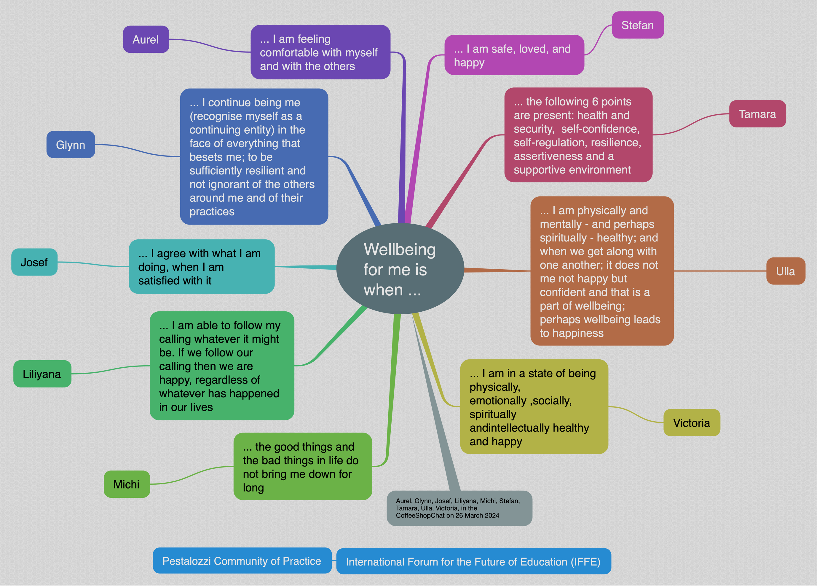 In autumn 2023 IFFE decided to organise online get-togethers and thematic chats every last Monday of the month from 19:00 – 20:30. These chats were advertised in the Pestalozzi Community of Practice and use Zoom as a platform. They have been opened to the wider interested public in 2025.