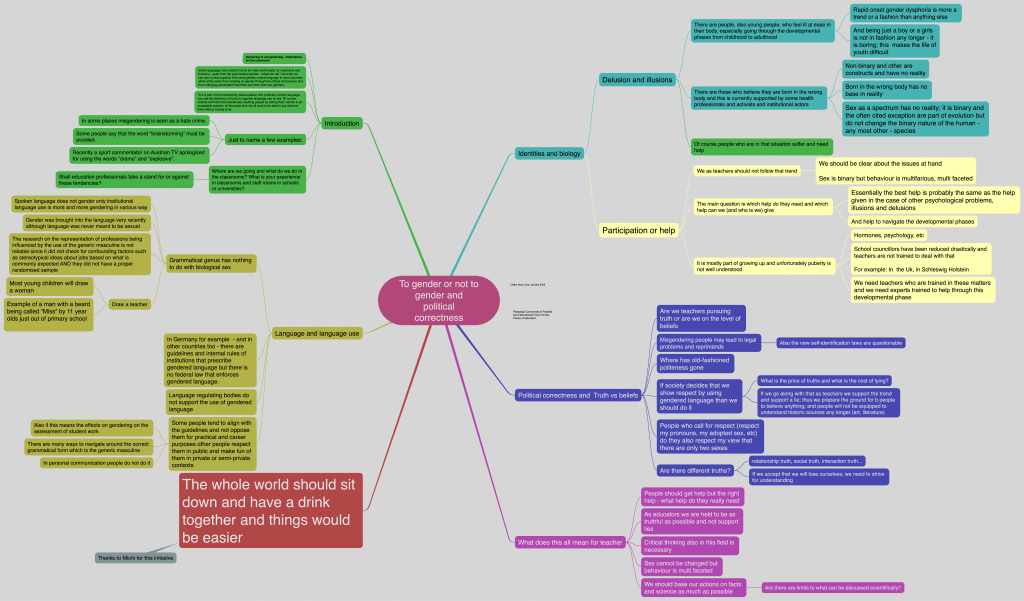 Some languages have distinct forms for male and female, for masculine and feminine – apart from the grammatical gender – others do not. Currently we can see a preoccupation with using gender neutral language in most countries while at the same time insisting on gender through the choice of pronouns and the underlying assumption that there are more than two genders.